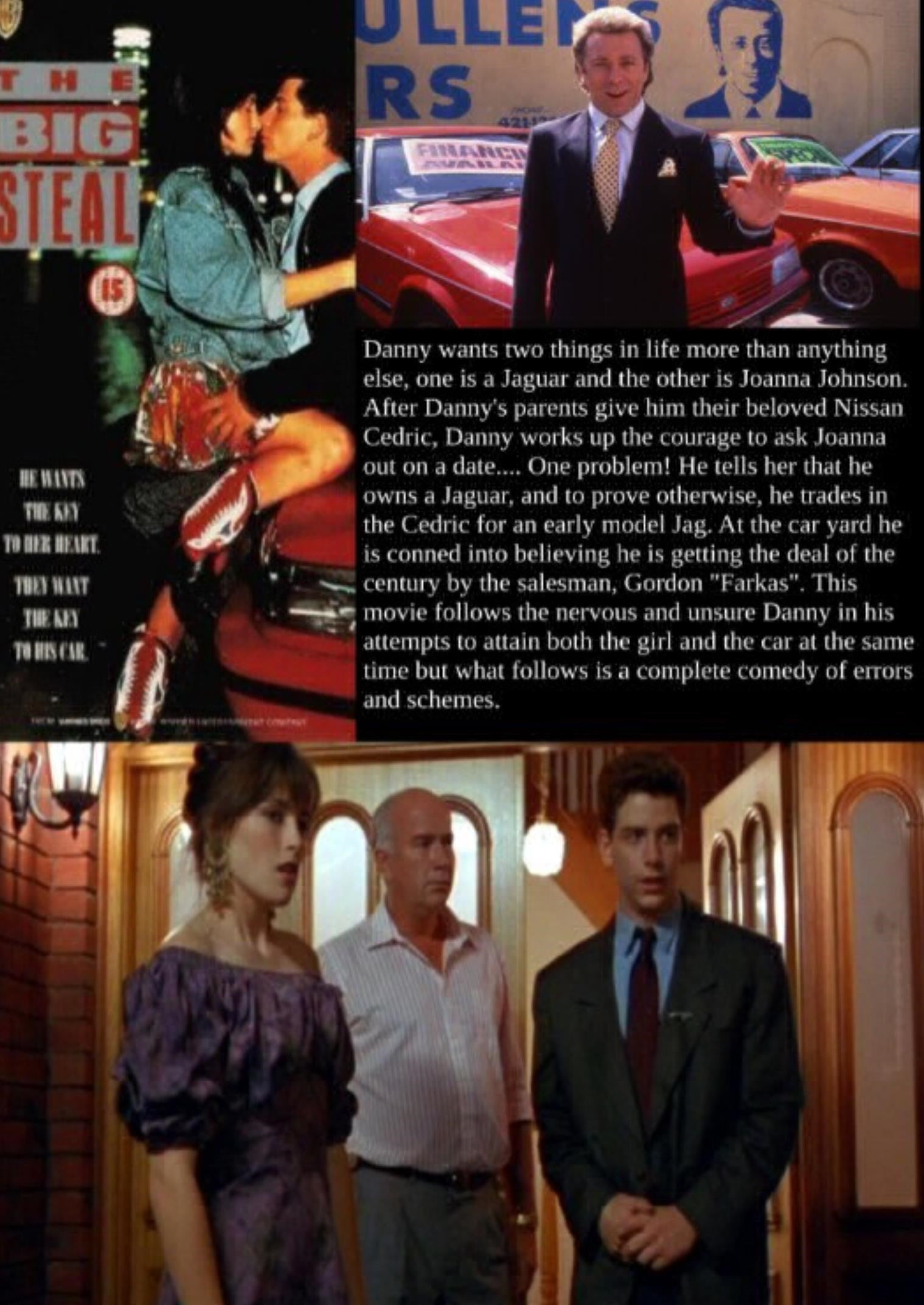 On Monday, Danny Clark (Mendelsohn) is the reluctant recipient of a birthday present he would rather forget - his father's old Nissan Cedric. By Tuesday he has asked the beautiful Joanna Johnson (Karvan) out on a date; however, he promised to pick her up in a Jaguar. In a tight fix, Danny trades the Nissan Cedric for a Jaguar only to be ripped off by a dodgy car salesman, Gordon Farkas (Bisley). Danny sets out to rectify wrongs.